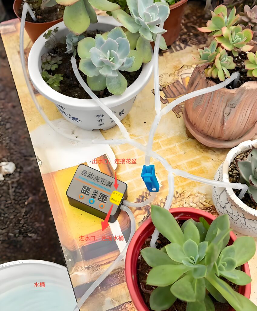 进水口连接水源,比如水桶
